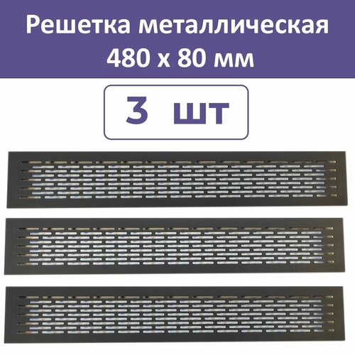 Лот 3 шт: Решетка вентиляционная 480х80 мм, алюминий, черная