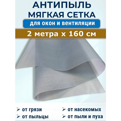 Антипыль 2 метра х 60 см сетка москитная с мельчайшей ячейкой, светло-серая