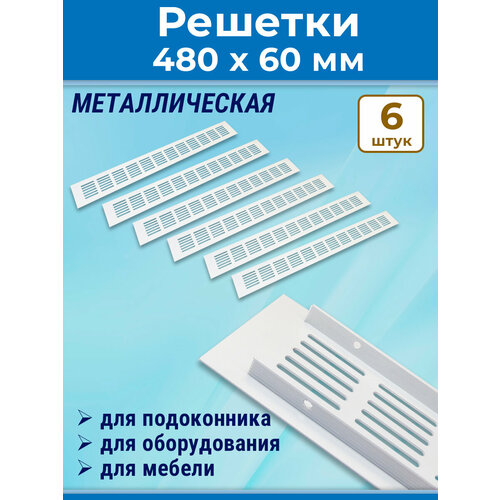 Лот 6 шт: Решетка 480x60 мм вентиляционная алюминий, Vals белая