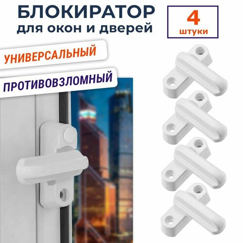 Лот 4 шт: Универсальный противовзломный оконный замок-блокиратор, металлический