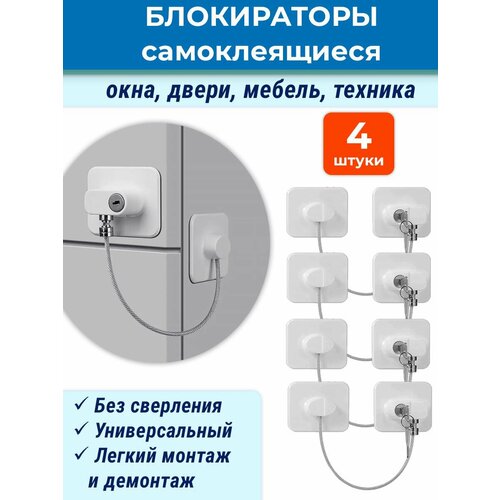 Лот 4 шт: Блокиратор мебели, холодильника, дверей, окна на липучке с тросом
