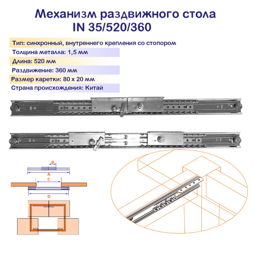 IN-35-850, Длина - 850 мм, раздвижение 640 мм