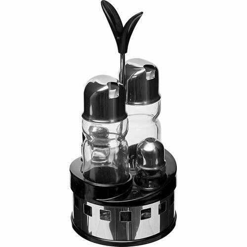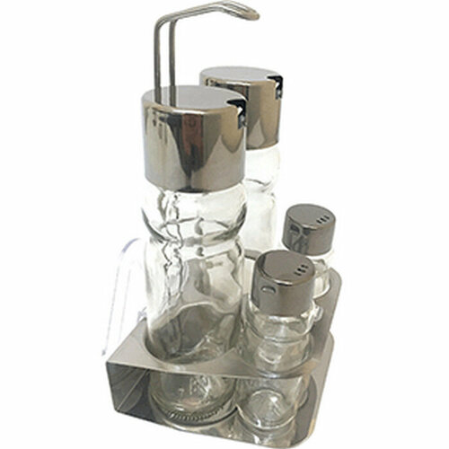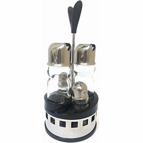 Набор д/специй 4 пр-та на подставке + салфетн; стекло, сталь нерж, MAK, QGY - 217