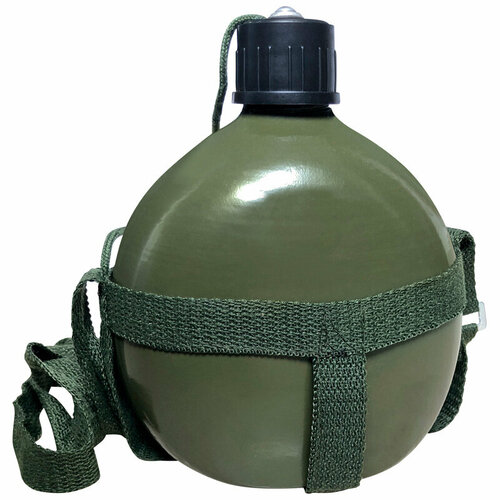 Фляга походная на ремне, объем 1 л, алюминий, 155 г, 12х7х17,5 см, зеленая