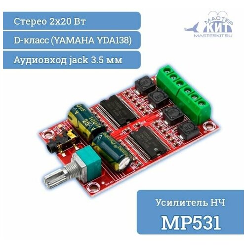 Плата стерео усилитель класса D 2*20Вт, YAMAHA YDA138, 2 канальный цифровой унч, нч, MP531 / МР531 Мастер Кит