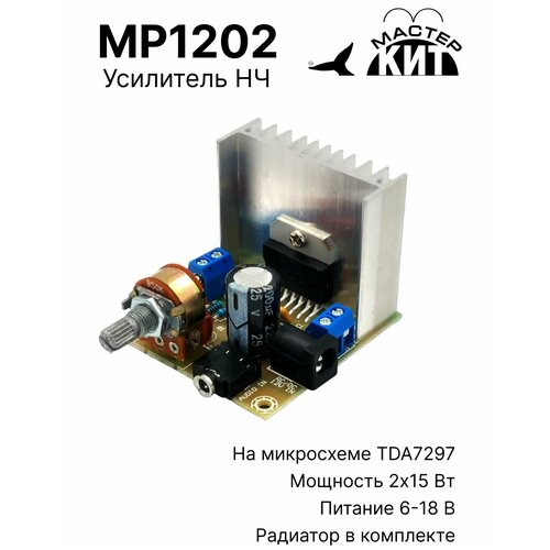 Cтерео усилитель звука класса AB, 2x30 Вт, для колонок, 2 канальный, унч, вч сч нч, TDA7297, МР1202 MP1202 Мастер Кит