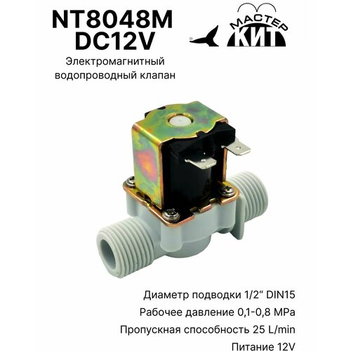 Электромагнитный водопроводный клапан (пластик), 1/2 дюйма, модуль расширения, 12 В, NT8048M DC12V, Мастер Кит