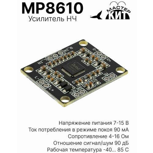 Стерео усилитель НЧ 2х15 Вт, класс D (PAM8610), MP8610 Мастер Кит