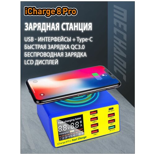 Станция зарядки многопортовая Mechanic V-Power 8 Pro Super Fast Charge с функцией беспроводной зарядки