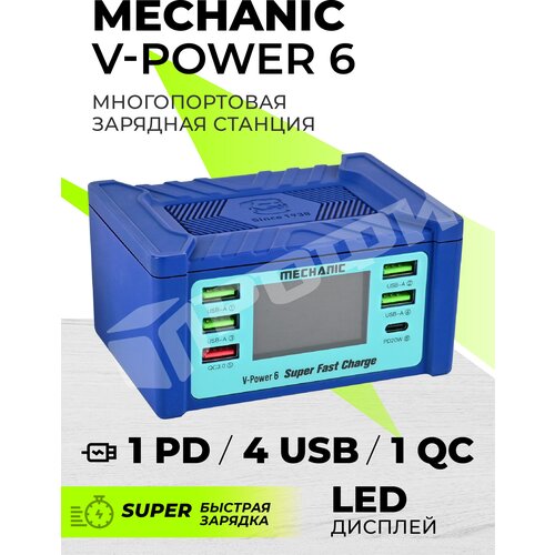 Док-станция настольная/Зарядная станция с 6 USB-портами и быстрой зарядкой Mechanic V-Power 6