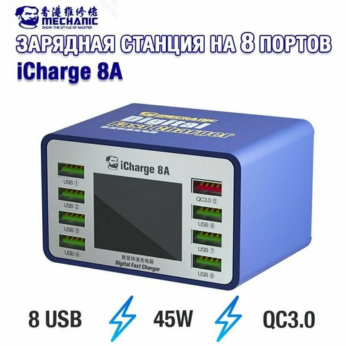 Интеллектуальная 8-ти портовая зарядная станция Mechanic iCharge 8A