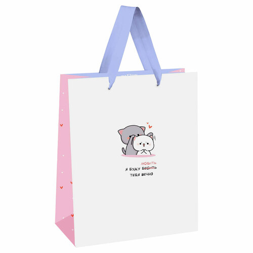 Пакет подарочный 11*14*6,5см MESHU "Я буду любить тебя вечно", выборочный лак, матовая ламинация