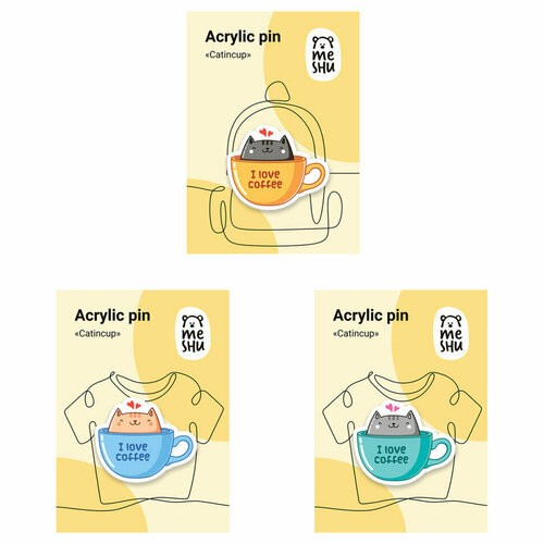 Набор акриловых значков MESHU "Catsincups", прямая УФ-печать, 3шт, 360462