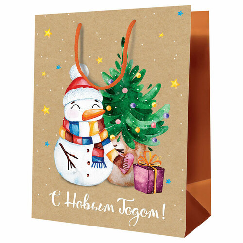 Пакет подарочный 18*23*10см MESHU "Новогодний снеговик", крафт, 24 штук, 354844