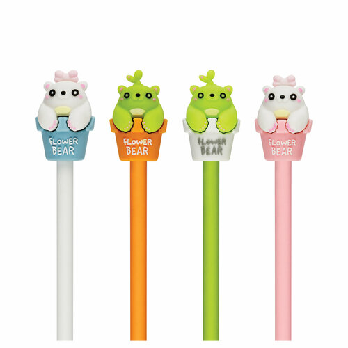 Ручка с топпером Meshu "Flower Bear", синяя, 0,7мм