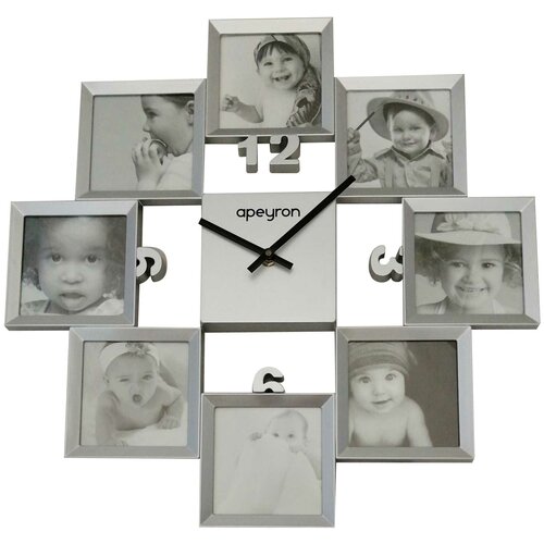 Настенные часы Apeyron RF9160-1 в виде квадратных рамок для фотографий, расположенных вокруг крестообразного циферблата. Лицевая сторона защищена стеклом. На белом циферблате часов с серым квадратВатный Матрас(белая вата)90*190 9 см хлопковое регенерированное волокно
