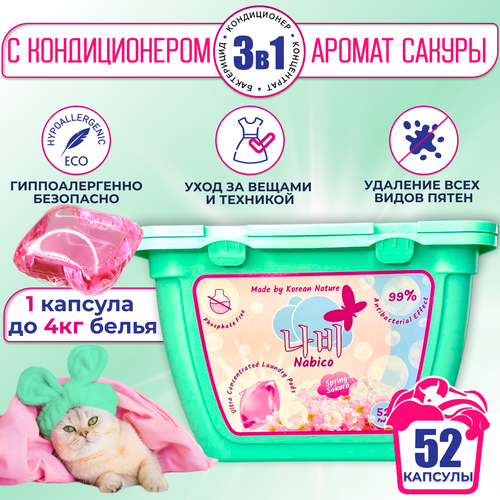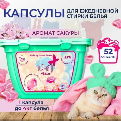Капсулы для стирки белья Nabico Spring Sakura, 52 шт, ультра концентрированные, универсальные