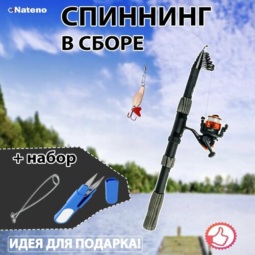Спиннинг для рыбалки в сборе оснащенный 2,1 м / телескопический с катушкой / летняя удочка
