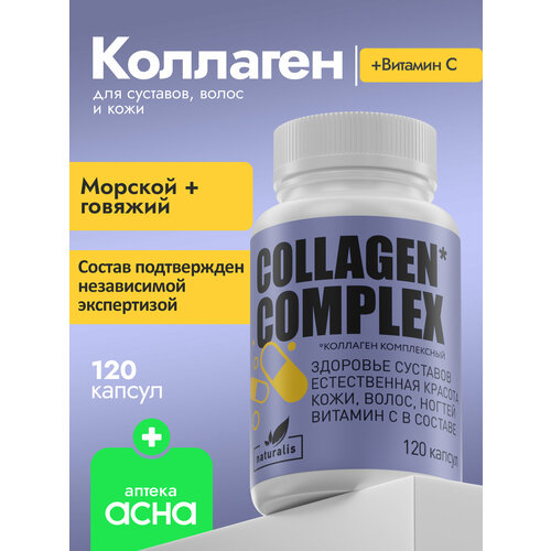 Коллаген в капсулах с витамином С морской и говяжий, красота кожи и волос, здоровье суставов, халял collagen 120 капсул Naturalis аптека асна