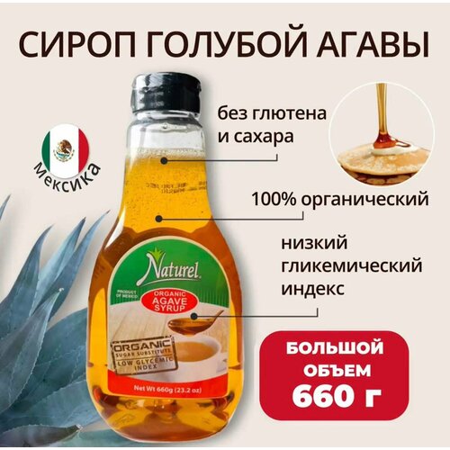 Сироп агавы натуральный Naturel, диетический без сахара и глютена, сахарозаменитель, vegan, без калорий, топпинг для напитков 660г