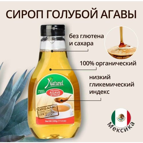 Сироп агавы натуральный органический Naturel, диетический без сахара и глютена, сахарозаменитель, vegan, без калорий, топпинг для напитков 330г
