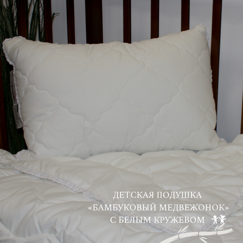 Детская Подушка «Бамбуковый Медвежонок», декор белым кружевом 40х60