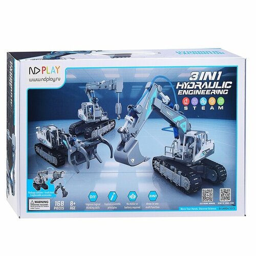 Конструктор гидравлический ND Play 3 в 1, экскаватор, кран, погрузчик, в коробке (306388)