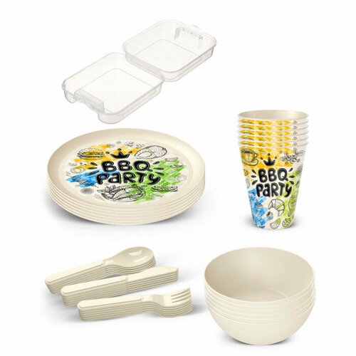 Набор для пикника с декором 37 предметов на 6 персон Бежевый