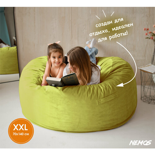 Огромный, большой, бескаркасный пуф из натурального велюра премиум качества Nemos. Кресло-мешок, пуфик размера XL