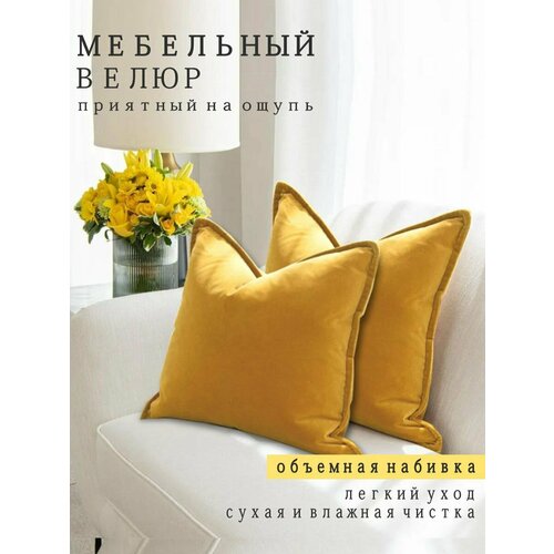 Подушки декоративные Nemos 40x40, 2 штуки, желтые, квадратные, из велюра