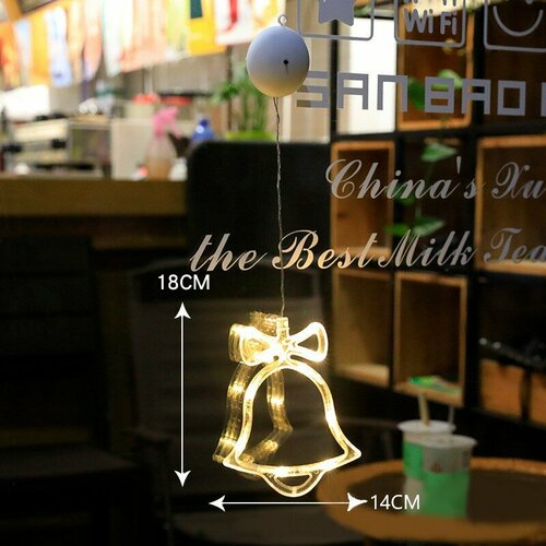 Светильник новогодний на присосках на окно, гирлянда, подвеска, Колокольчик