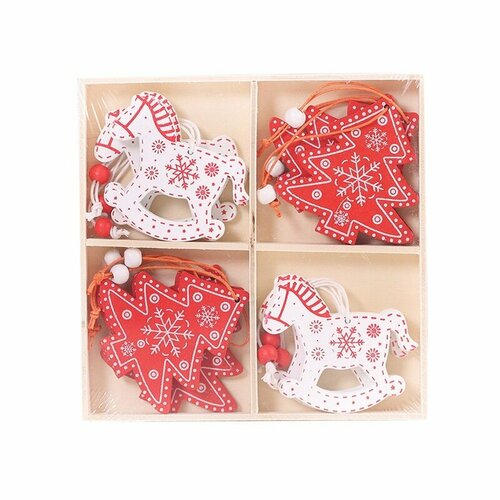 Набор новогодних деревянных елочных игрушек, елочка лошадка