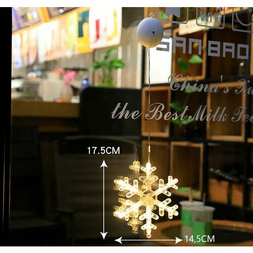 Светильник новогодний на присосках на окно, гирлянда, подвеска, Снежинка