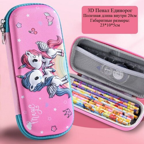 Пенал школьный для девочек мальчиков с 3д рисунком на молнии Единорог