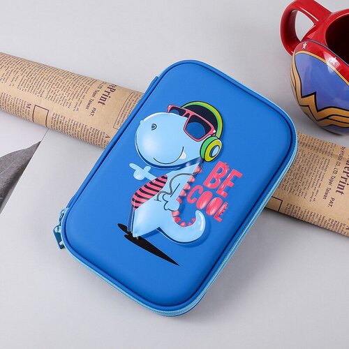Пенал школьный с динозавром в школу для девочек мальчиков с 3д рисунком на молнии, голубой