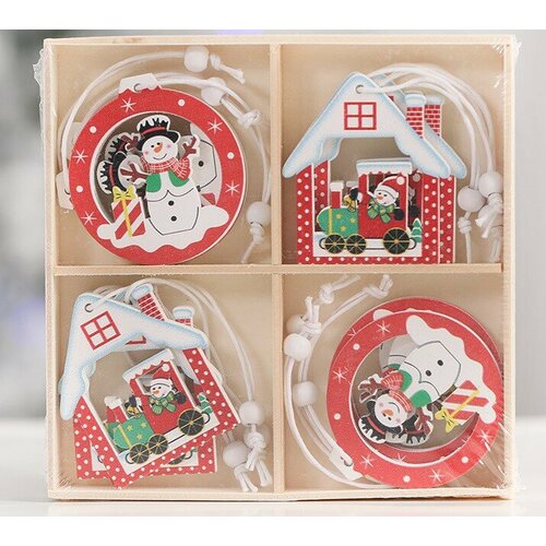 Набор новогодних деревянных елочных игрушек, снеговик