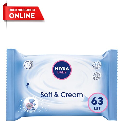 Влажные салфетки Nivea Baby Soft & Cream, липучка, 63 шт.