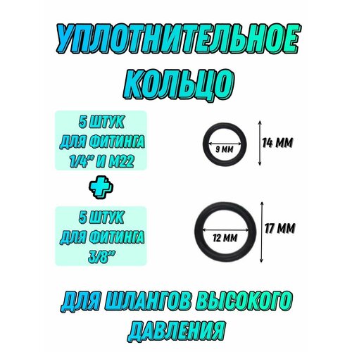 Уплотнительное кольцо прокладка для шланга мойки высокого давления 1/4 дюйма (М22) и 3/8 дюйма 10 шт