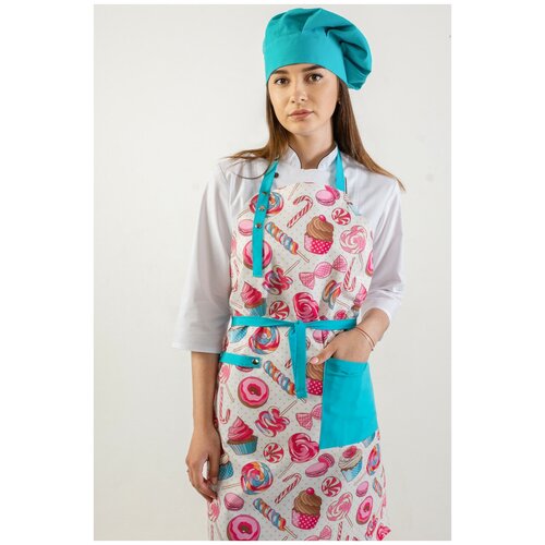 Фартук повара "Cake" с бирюзовыми лямками
