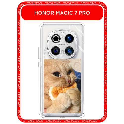 Чехол на Honor Magic 7 Pro / Хонор Мэджик 7 Про с принтом Котик кушает, прозрачный