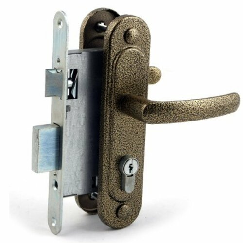 Замок врезной Омега, ЗВ7.02, 00-00000601, ручка в комплекте, цилиндровый, бронзовый