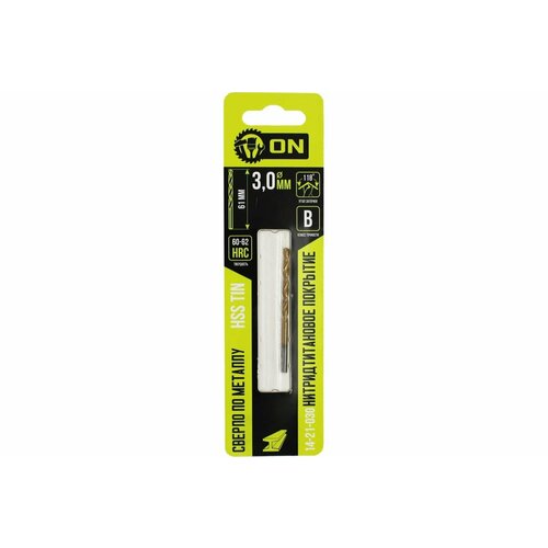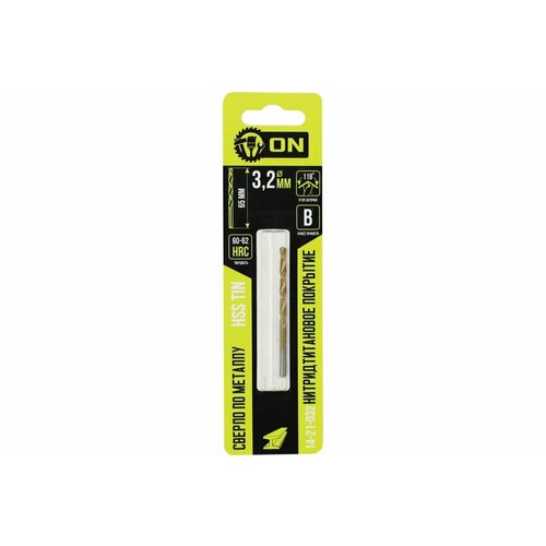 Сверло по металлу HSS TIN 3.2x65 мм, нитридтитановое покрытие On 14-21-032