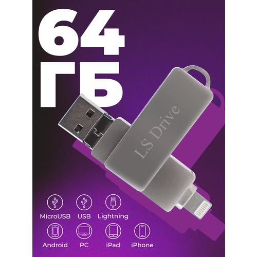 Металлическая флешка 64 гб, 3в1 Lightning, Type-C, USB флешка для компьютера, ноутбука и телефона, флеш накопитель