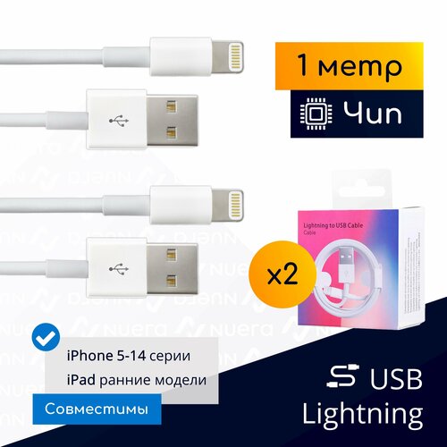 Комплект кабелей USB - Lightning для iPhone и iPad с чипом, 1 метр, белые / 2 шт. / Original drop