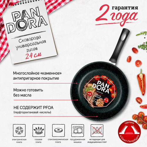 Сковорода литая PANDORA с антипригарным покрытием 24 см с фиксированной ручкой и без крышки