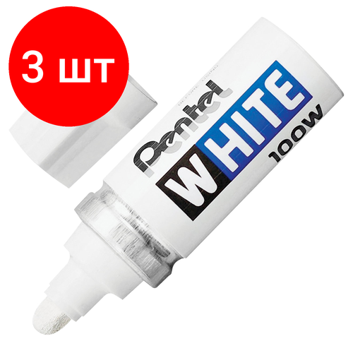 Комплект 3 шт, Маркер-краска лаковый PENTELWHITE, 6.5 мм, белый, алюминиевый корпус, длина письма 1200 м, X100W