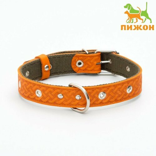 Ошейник комбинированный безразмерный, кожа/брезент, 60 х 3 см, ОШ 30-57 см, рыжий/зелёный