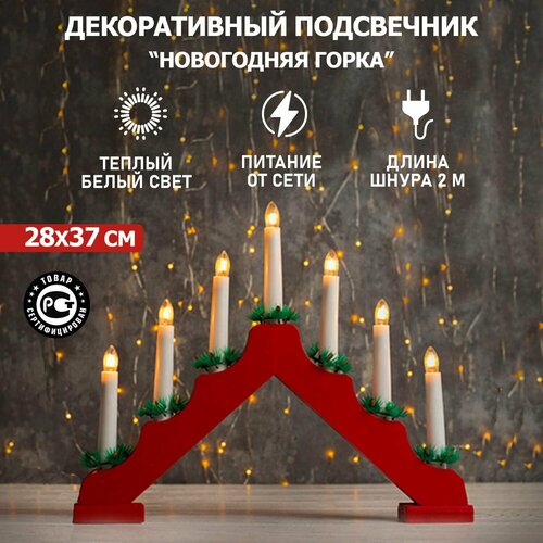 NEON-NIGHT Новогодняя горка 7 свечек, 37 см,/белый/зеленый