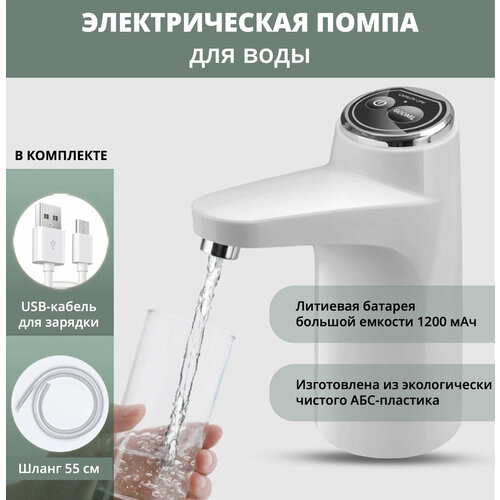 Электрическая помпа для воды с аккумулятором и зарядкой USB Белая