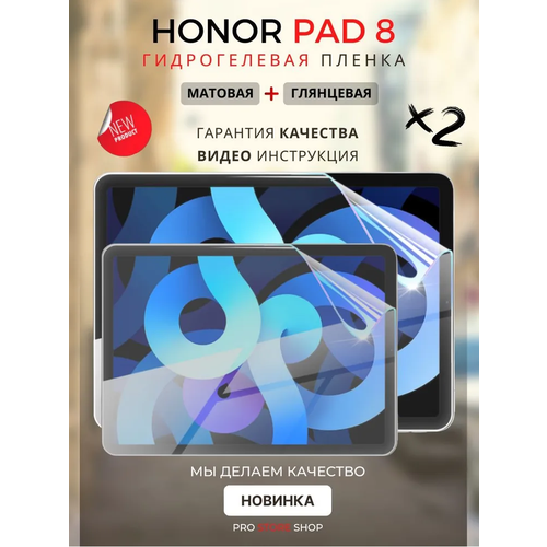 Гидрогелевая Защитная Плёнка для планшета HONOR Pad 8 (хонор Пад 8) 12 дюймов, Комплект 2 шт. Глянцевая+Матовая.